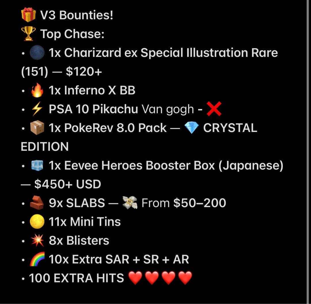 Ready to try your luck? Send us a direct message (DM) to check current stock and see the updated bounty list!